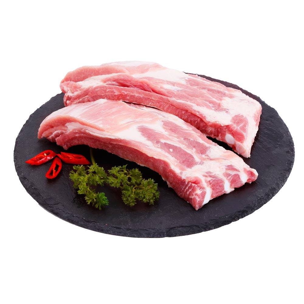 Thịt heo sườn non từ heo mua của dân nuôi.